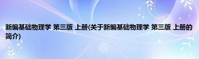 本文关于新编基础物理学 第三版 上册的简介就讲解完毕,希望对大家有所帮助。