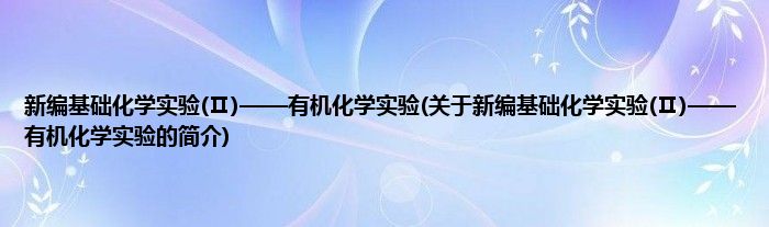 本文关于新编基础化学实验(Ⅱ)——有机化学实验的简介就讲解完毕,希望对大家有所帮助。