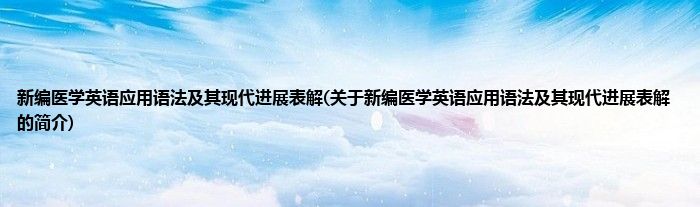 本文关于新编医学英语应用语法及其现代进展表解的简介就讲解完毕,希望对大家有所帮助。