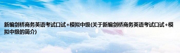 本文关于新编剑桥商务英语考试口试+模拟中级的简介就讲解完毕,希望对大家有所帮助。