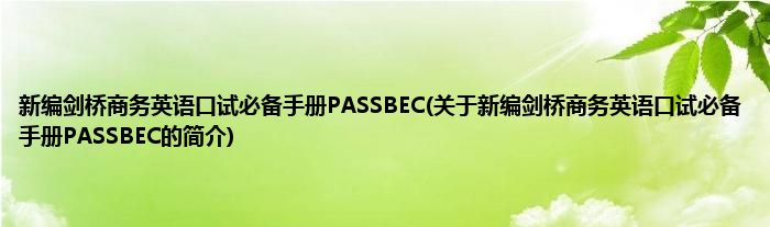 本文关于新编剑桥商务英语口试必备手册PASSBEC的简介就讲解完毕,希望对大家有所帮助。