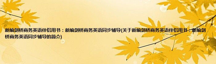 本文关于新编剑桥商务英语伴侣用书:新编剑桥商务英语同步辅导的简介就讲解完毕,希望对大家有所帮助。