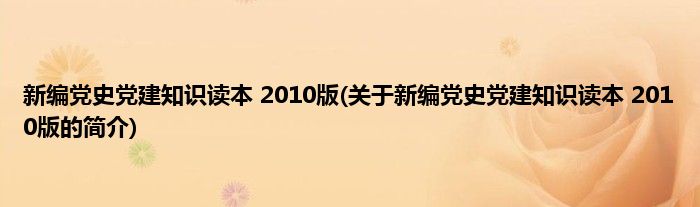 本文关于新编党史党建知识读本 2010版的简介就讲解完毕,希望对大家有所帮助。