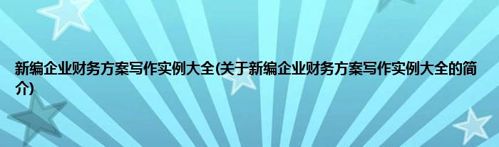 本文关于新编企业财务方案写作实例大全的简介就讲解完毕,希望对大家有所帮助。
