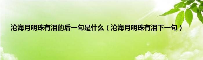 大家好,小问来为大家解答以上问题。沧海月明珠有泪的后一句是什么,沧海月明珠有泪下一句这个很多人还不知道,现在让我们一起来看看吧!