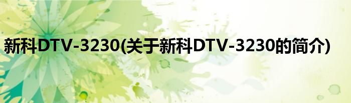 本文关于新科DTV-3230的简介就讲解完毕,希望对大家有所帮助。