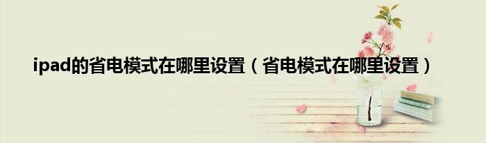 以上就是【ipad的省电模式在哪里设置,省电模式在哪里设置】相关内容。