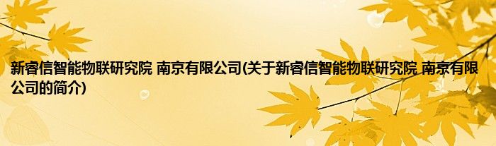 本文关于新睿信智能物联研究院 南京有限公司的简介就讲解完毕,希望对大家有所帮助。