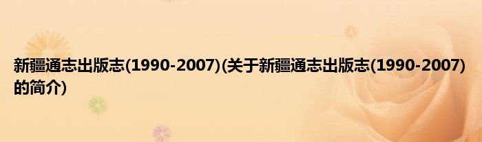 本文关于新疆通志出版志(1990-2007)的简介就讲解完毕,希望对大家有所帮助。
