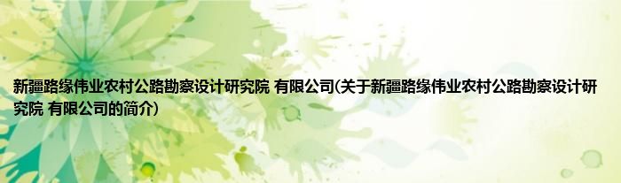 大家好,新疆路缘伟业农村公路勘察设计研究院 有限公司,关于新疆路缘伟业农村公路勘察设计研究院 有限公司的简介很多人还不知道,现在让我们一起来看看吧!