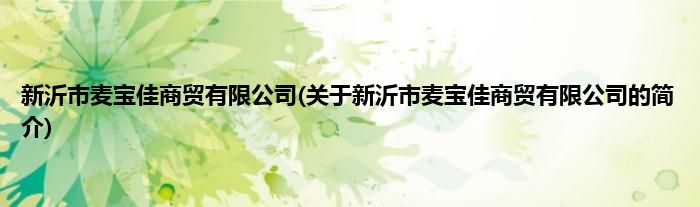本文关于新沂市麦宝佳商贸有限公司的简介就讲解完毕,希望对大家有所帮助。