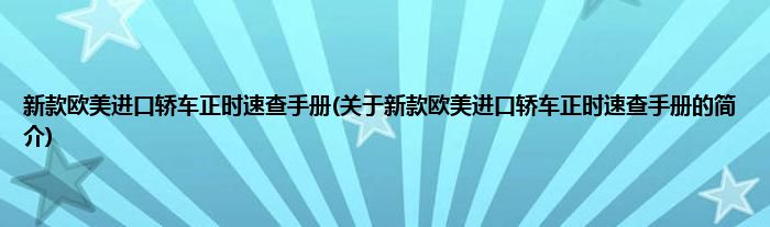 本文关于新款欧美进口轿车正时速查手册的简介就讲解完毕,希望对大家有所帮助。