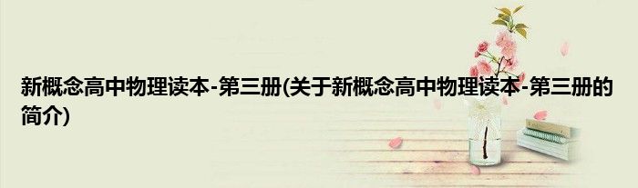 大家好,新概念高中物理读本-第三册,关于新概念高中物理读本-第三册的简介很多人还不知道,现在让我们一起来看看吧!