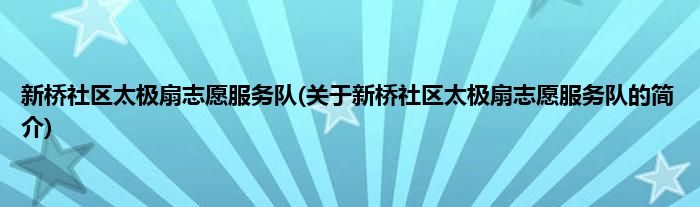 大家好,新桥社区太极扇志愿服务队,关于新桥社区太极扇志愿服务队的简介很多人还不知道,现在让我们一起来看看吧!