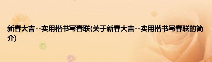 大家好,新春大吉--实用楷书写春联,关于新春大吉--实用楷书写春联的简介很多人还不知道,现在让我们一起来看看吧!