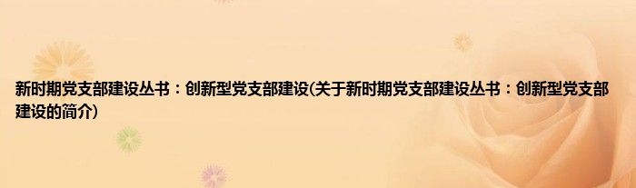 本文关于新时期党支部建设丛书:创新型党支部建设的简介就讲解完毕,希望对大家有所帮助。