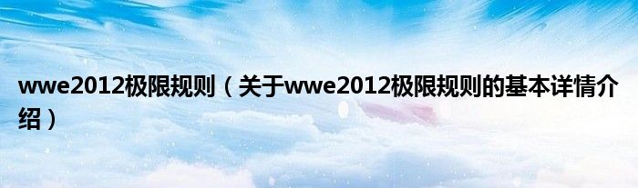 本文关于wwe2012极限规则的基本详情介绍就讲解完毕,希望对大家有所帮助。