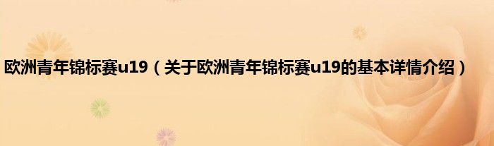 本文关于欧洲青年锦标赛u19的基本详情介绍就讲解完毕,希望对大家有所帮助。