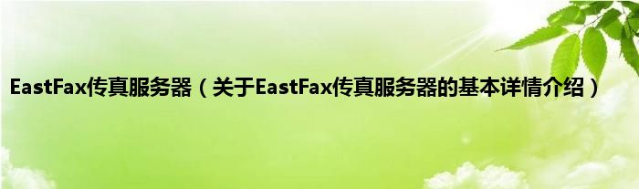 本文关于EastFax传真服务器的基本详情介绍就讲解完毕,希望对大家有所帮助。