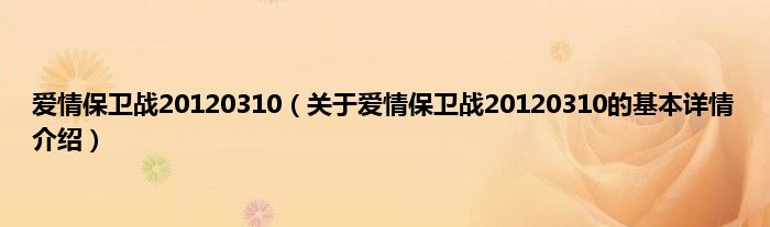 本文关于爱情保卫战20120310的基本详情介绍就讲解完毕,希望对大家有所帮助。