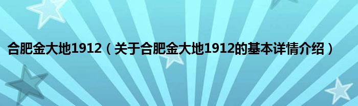 本文关于合肥金大地1912的基本详情介绍就讲解完毕,希望对大家有所帮助。