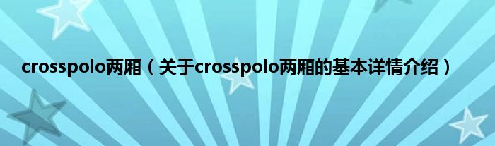 本文关于crosspolo两厢的基本详情介绍就讲解完毕,希望对大家有所帮助。