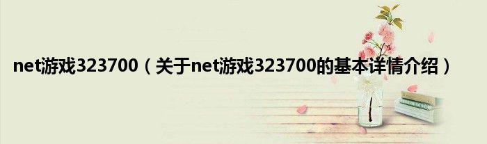 本文关于net游戏323700的基本详情介绍就讲解完毕,希望对大家有所帮助。