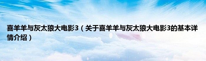本文关于喜羊羊与灰太狼大电影3的基本详情介绍就讲解完毕,希望对大家有所帮助。