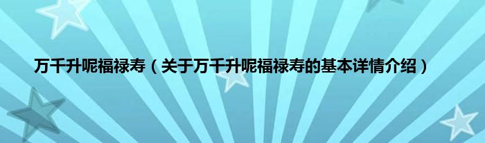 本文关于万千升呢福禄寿的基本详情介绍就讲解完毕,希望对大家有所帮助。