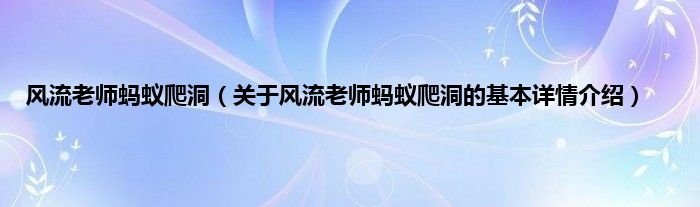风流老师蚂蚁爬洞(关于风流老师蚂蚁爬洞的基本详情介绍)