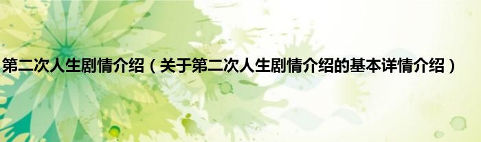 本文关于第二次人生剧情介绍的基本详情介绍就讲解完毕,希望对大家有所帮助。