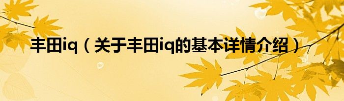 本文关于丰田iq的基本详情介绍就讲解完毕,希望对大家有所帮助。