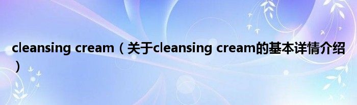 本文关于cleansing cream的基本详情介绍就讲解完毕,希望对大家有所帮助。
