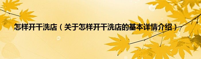 本文关于怎样开干洗店的基本详情介绍就讲解完毕,希望对大家有所帮助。