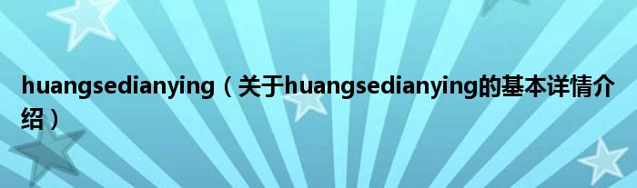 本文关于huangsedianying的基本详情介绍就讲解完毕,希望对大家有所帮助。