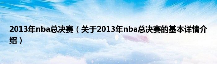 本文关于2013年nba总决赛的基本详情介绍就讲解完毕,希望对大家有所帮助。
