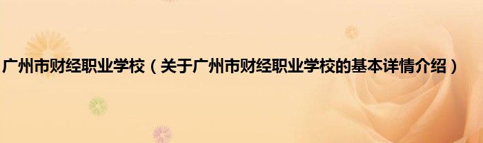 本文关于广州市财经职业学校的基本详情介绍就讲解完毕,希望对大家有所帮助。