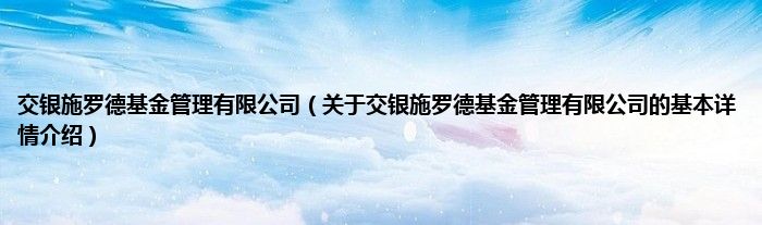 本文关于交银施罗德基金管理有限公司的基本详情介绍就讲解完毕,希望对大家有所帮助。