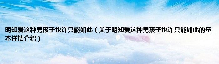 大家好我是小蝌蚪,明知爱这种男孩子也许只能如此,关于明知爱这种男孩子也许只能如此的基本详情介绍很多人还不知道,那么现在让我们一起来看看吧!