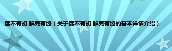 本文关于靡不有初 鲜克有终的基本详情介绍就讲解完毕,希望对大家有所帮助。