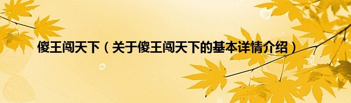 本文关于傻王闯天下的基本详情介绍就讲解完毕,希望对大家有所帮助。