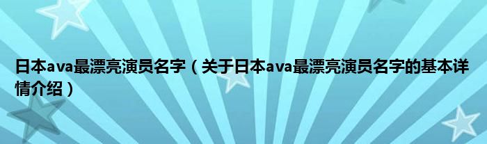 日本ava最漂亮演员名字(关于日本ava最漂亮演员名字的基本详情介绍)