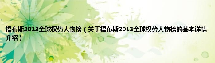 本文关于福布斯2013全球权势人物榜的基本详情介绍就讲解完毕,希望对大家有所帮助。