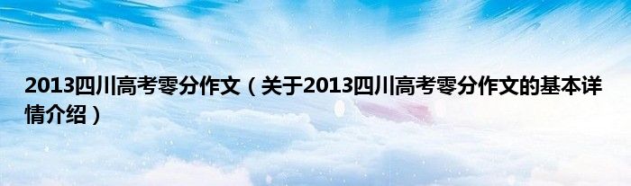 本文关于2013四川高考零分作文的基本详情介绍就讲解完毕,希望对大家有所帮助。