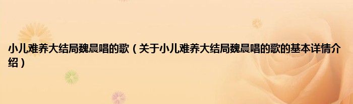 本文关于小儿难养大结局魏晨唱的歌的基本详情介绍就讲解完毕,希望对大家有所帮助。