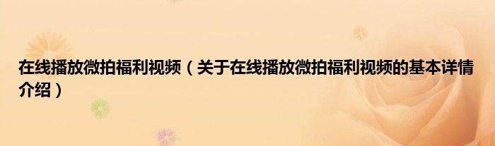 在线播放微拍福利视频(关于在线播放微拍福利视频的基本详情介绍)