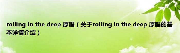 本文关于rolling in the deep 原唱的基本详情介绍就讲解完毕,希望对大家有所帮助。