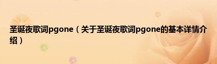 本文关于圣诞夜歌词pgone的基本详情介绍就讲解完毕,希望对大家有所帮助。