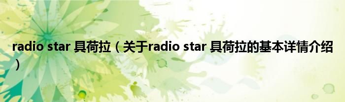 本文关于radio star 具荷拉的基本详情介绍就讲解完毕,希望对大家有所帮助。