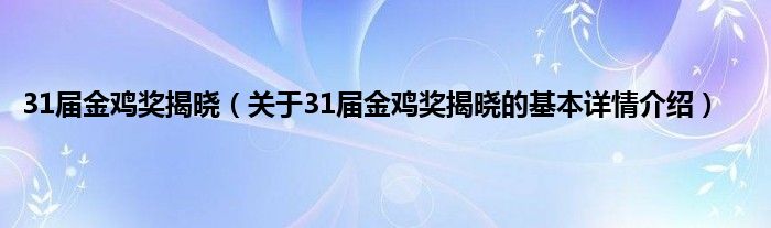 本文关于31届金鸡奖揭晓的基本详情介绍就讲解完毕,希望对大家有所帮助。